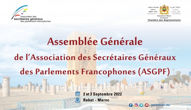 مجلس النواب يحتضن يومي 02 و03 شتنبر 2022 الجمع العام لجمعية الأمناء العامين للبرلمانات الفرنكوفونية